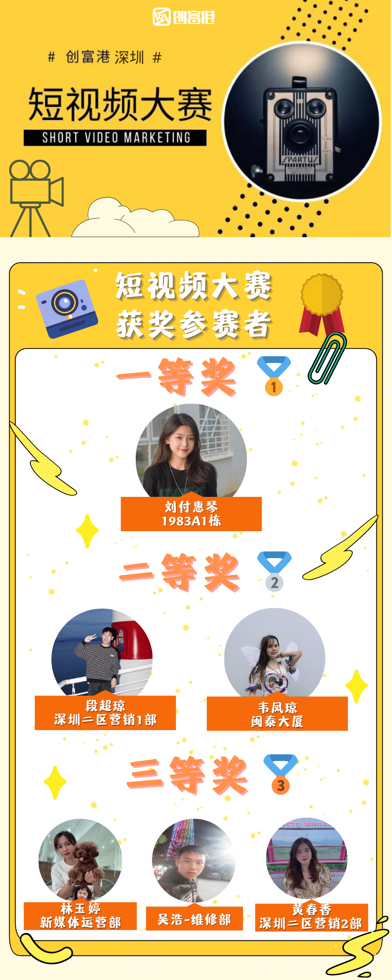 日前,由创富港深圳一分部主办、深圳一分部全员参与的“短视频大赛”落下帷幕。活动整体历时近2个月,经过作品征集、作品初审、线上数据统计、最终评分等阶段,6部独具匠心的短视频作品脱颖而出,斩获各个奖项。