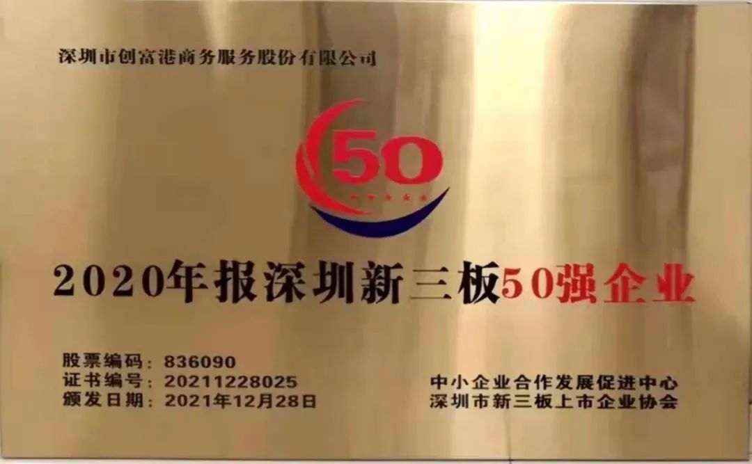 截至目前,全国新三板创新层企业已超过1200家。『创富港』(股票代码:836090)凭借强大的综合实力和良好的经济收益脱颖而出,荣登“2020年报深圳新三板企业营业收入、净利润、资产规模50强”榜单,并被授予“2020年报深圳新三板50强企业”荣誉奖牌。