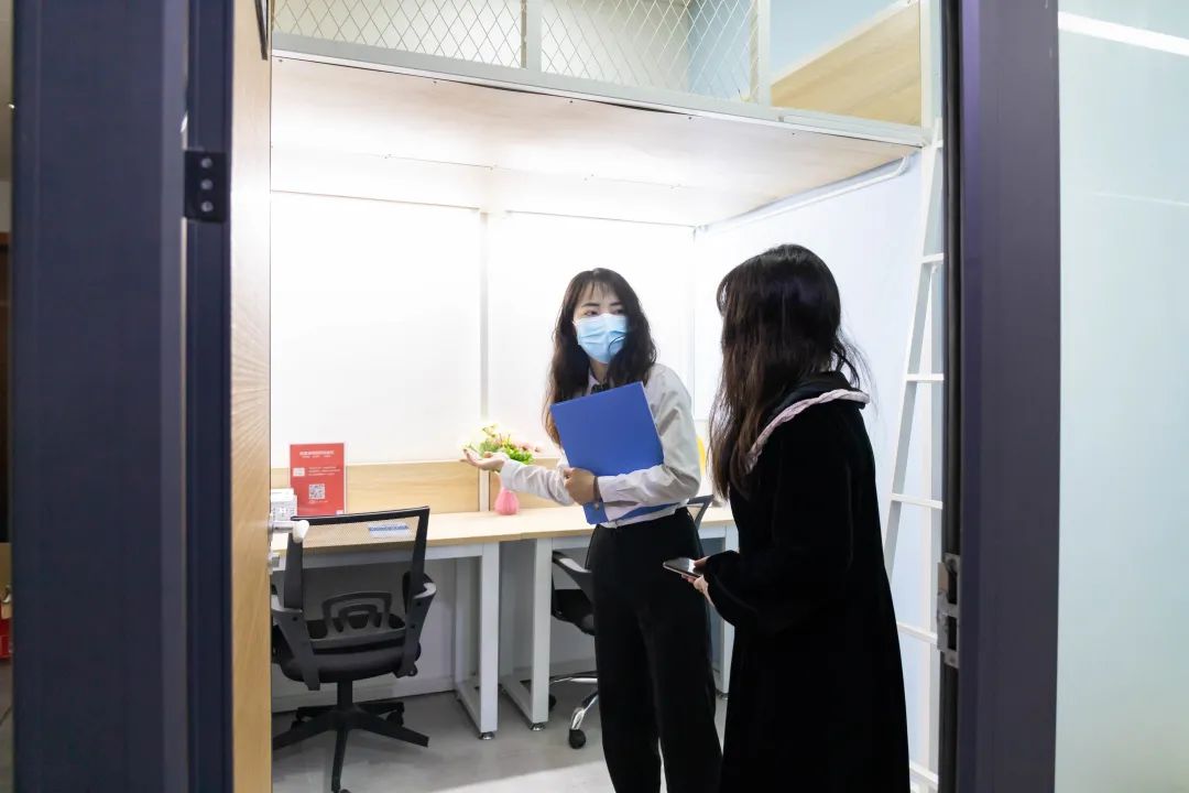 旁边还放置有快递柜,会员可以在这里随时寄出、收取快递,非常方便。“港”姐说,创富港提供的不仅仅是办公室。工商财税、记账报税、公司注册、创业补贴等都可以是创富港可提供的服务。其实对于创业者来说,共享办公空间已经不再是一个冰冷的办公场所,里面有热情温暖的工作人员,还有虽来自各行各业却与你一起奋斗的创业伙伴,思想的碰撞、商业的交流、温暖的陪伴,每天都有许多故事在这里发生。随着时代的发展,共享办公越来越成为年轻创业者们关注的焦点,新型的办公模式给大家带来更多的办公便利和创新灵感,如果你选择在创富港开启你的创业故事,我们绝对会成为你创业路上最忠实的陪伴者。