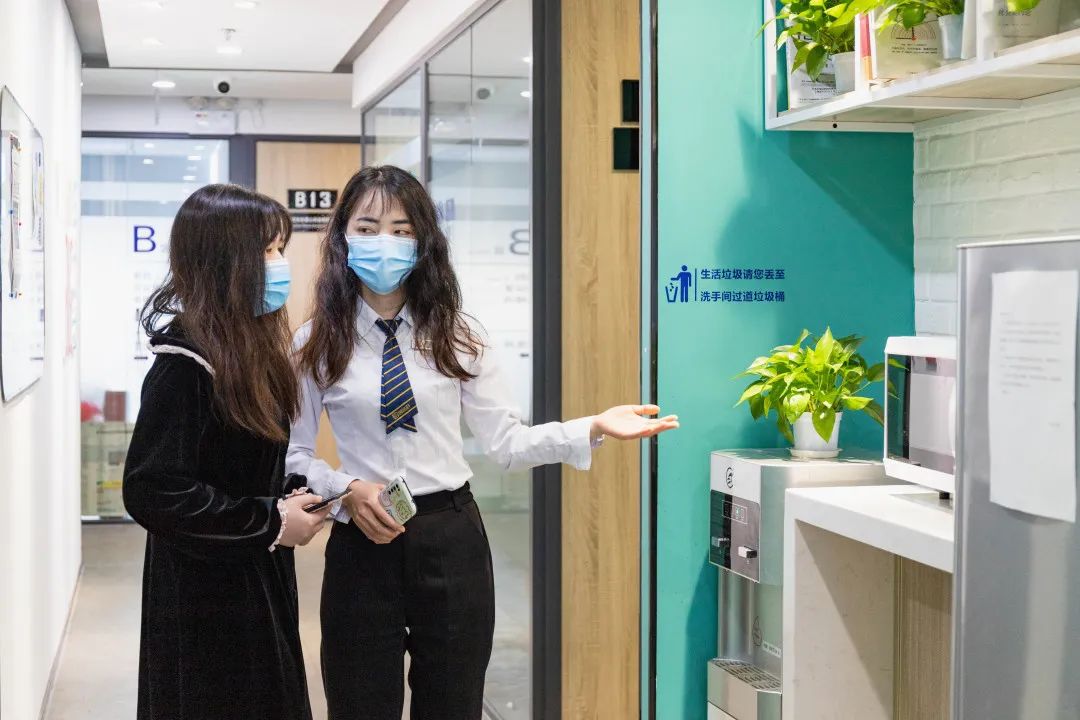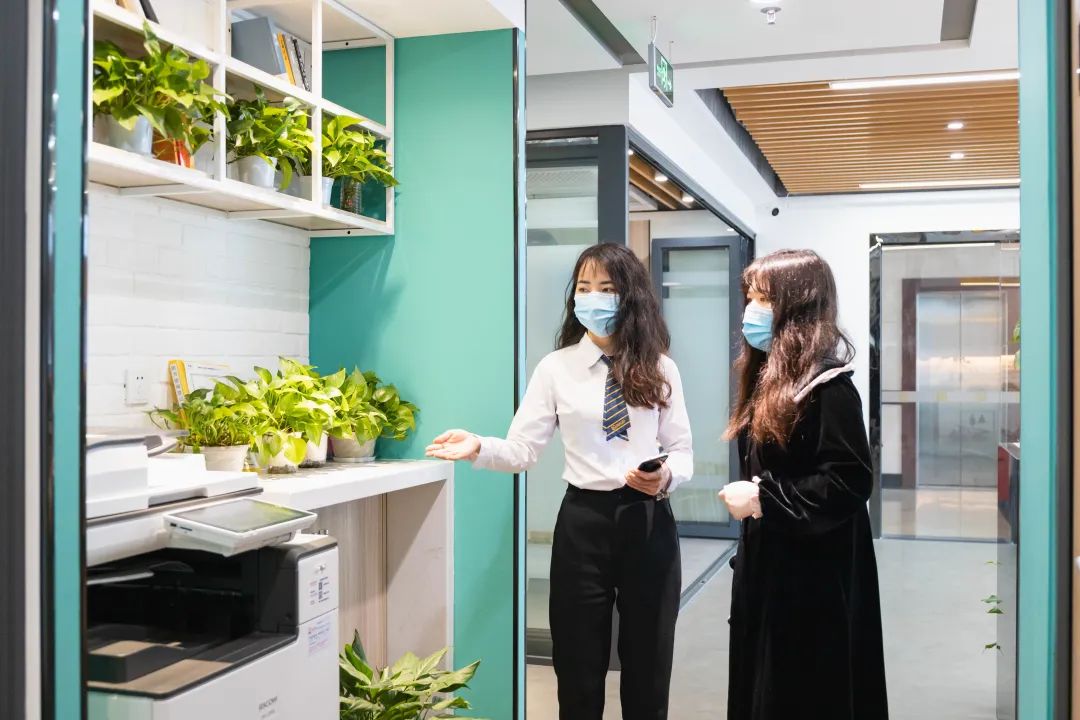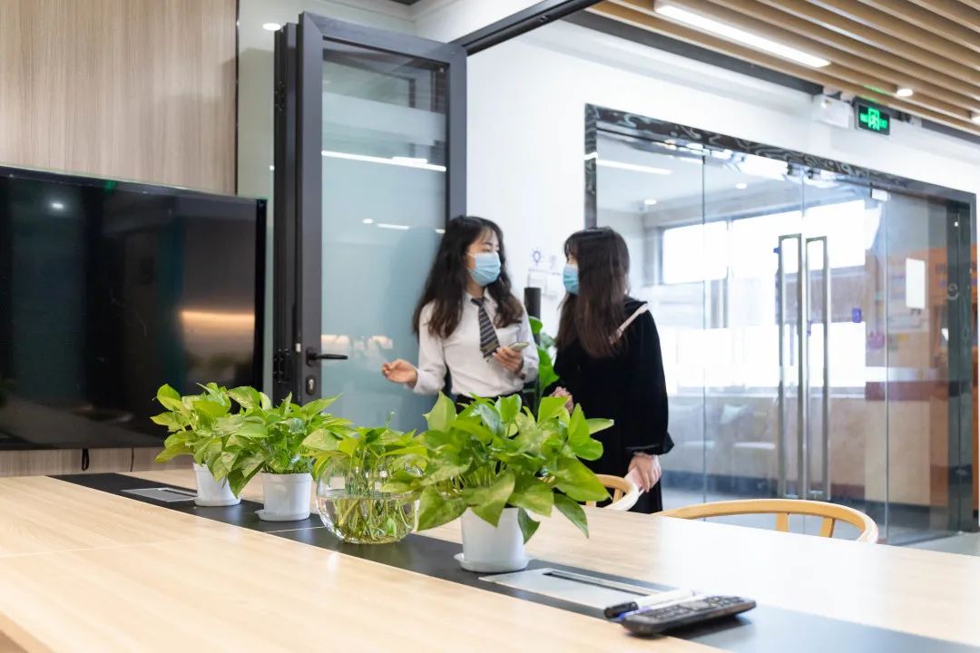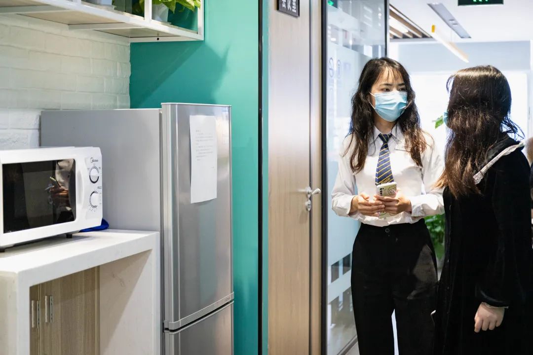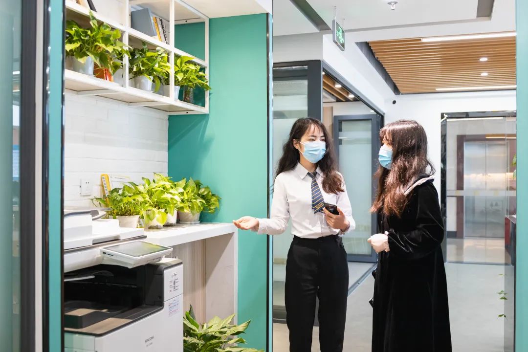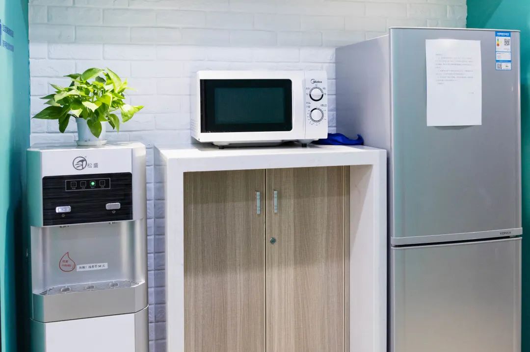 一进门就是巨大的创富港logo,端庄大气,旁边的绿植葱葱郁郁,让人心旷神怡。听说是来看办公室的,“港”姐马上拿出了办公室示意图,详细介绍了空间内的所有户型,包括:是否靠窗、办公人数、所需面积大小、是否需要商住等。在确定了办公人数和面积等基本需求后,“港”姐带我们来到了样板间。创富港独立办公室可容纳1-20人,专为创业者及中小型企业提供办公场地,办公室内办公家具配套齐全,已装修完毕,免水电物业费。每个办公室里还配备有商务座机,该服务由创富港自主研发,为会员提供当地的座机电话,可通过系统识别来电,在系统的帮助下,创富港秘书还会以企业秘书的身份为企业接听电话。(商务座机服务可咨询文末的客服电话哦~)参观完办公室后,“港”姐带我们来到了会议室,创富港共享办公空间的会议室可以按需求线上预定,非常方便。会议室宽敞且灯光明亮,配备有液晶屏幕,可连接电脑使用,还有白板可供书写。排插便于随时充电,桌上的绿萝都被照顾的很好,焕发出勃勃生机。茶水间是空间内极具生活感的一个地方,在用餐和休闲的时间,大家聚集在这里热饭、拿出冰箱里的食物、倒上一杯水,一边喝一边与朋友们聊天。茶水间的架子上还放置了许多书籍,大家可以随时免费借阅,丰富知识储备也是创业人必不可少的~谈话间,我们来到了文印机的区域。“港”姐介绍说,空间内的会员们需要复印、打印、扫描都可以在这台机器上完成,不用再浪费时间去外面的文印店,在物价飞涨的时代,空间内的文印机依然保持着优惠的价格。