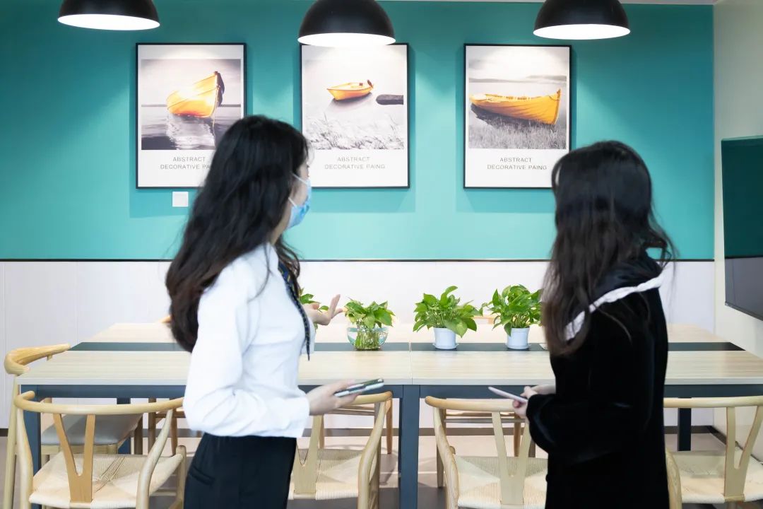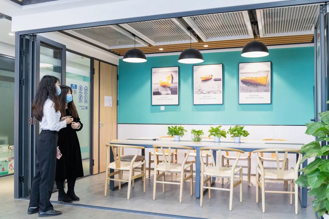 同时,创富港也会定期在这里发布创享邦社群活动,为大家提供商业培训和演讲,组织大家一起进行商业交流。最后,“港”姐带我们来到了洽谈区,无论是与客户交谈,还是休息时的洽谈,都可以在这里完成。