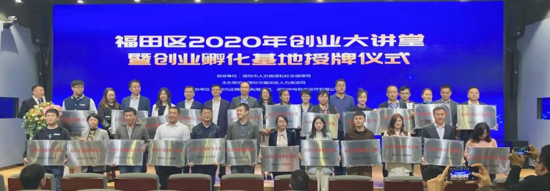 2020年12月9日,创富港受邀参加由深圳福田区人力资源局主办的创业大讲堂暨创业孵化基地授牌仪式,活动在华强北中电迪富大厦隆重举行。据主办方介绍,本次活动是为了进一步推动福田区创业带动就业工作,提升创业孵化基地服务质量,有针对性为创业园区和入园创业者提供优质创业服务,将公共创业服务普惠到有需求的各类创业群体。通过开展创业大讲堂,分享创业成功人士的创业经验、交流创业孵化基地建设可持续发展模式、有效对接创业扶持政策,推动福田区创业孵化基地迈向更高台阶,为创业者提供更好的场地支持,进一步推动福田区创业带动就业工作,提升创业孵化基地服务质量。创富港工商财税总监刘更生代表公司出席了本次活动,创富港安吉尔联合办公空间荣获区级创业孵化基地称号。被誉为创业孵化基地的创富港安吉尔联合办公空间内的企业,可享受更多的政府惠企政策与补贴。创富港工商财税总监刘更生(下排右二)代表公司出席本次活动