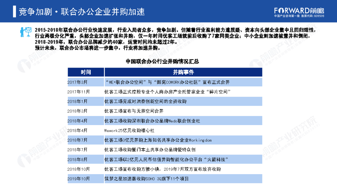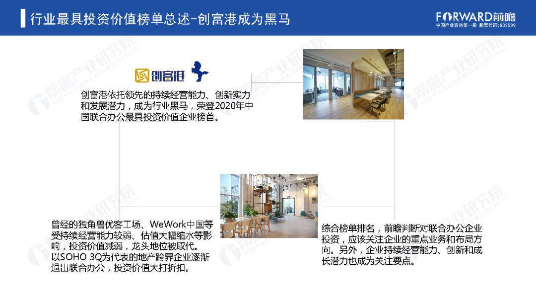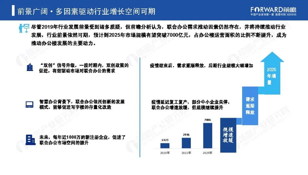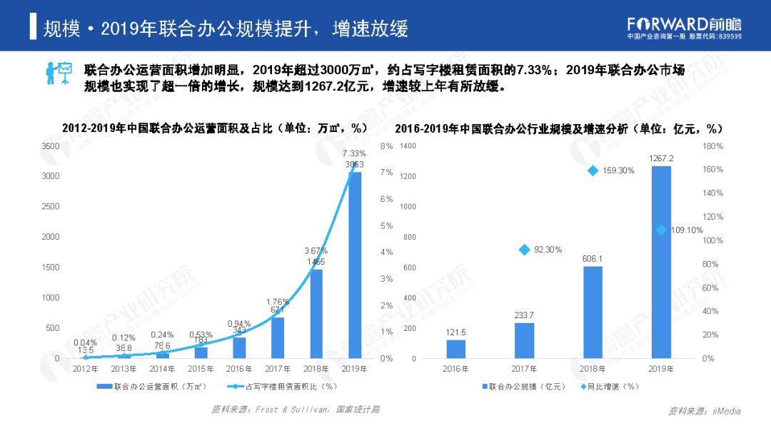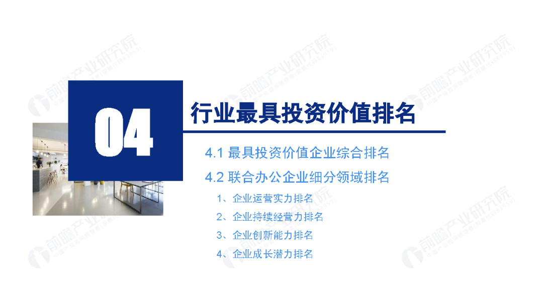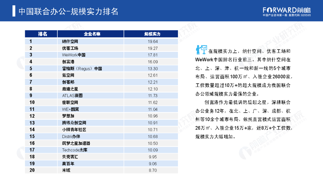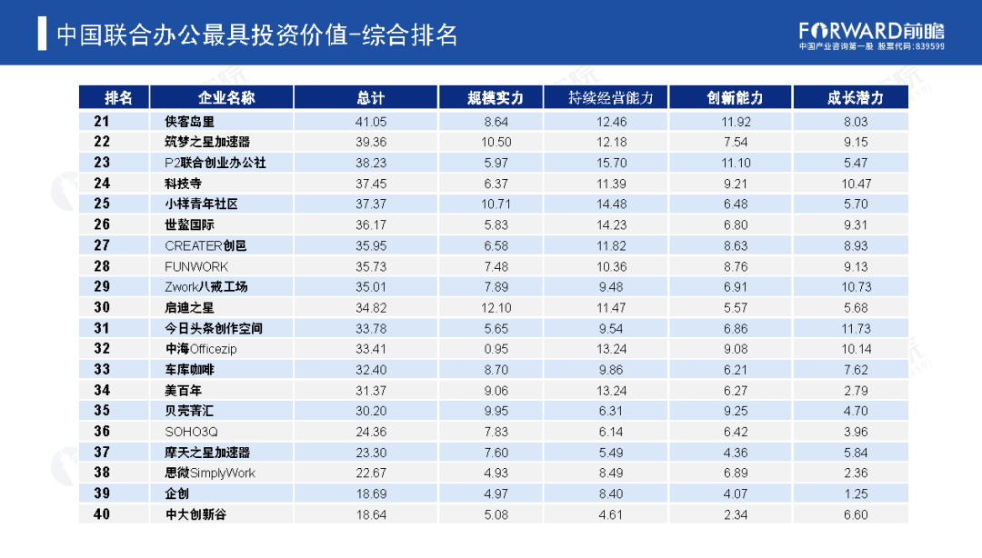 联合办公是一种为降低办公室租赁成本而进行共享办公空间的办公模式,来自不同公司的个人在联合办公空间中共同工作。在特别设计和安排的办公空间中共享办公环境,彼此独立完成各自项目。近年来,以“大众创业、万众创新”为代表的政策激发了我国创新、创业热潮,2019年我国联合办公市场规模达1267.2亿元。为帮助资本方和企业家明确联合办公最具投资价值企业。前瞻搭建指标体系,出具2020年中国联合办公最具投资价值企业榜单。