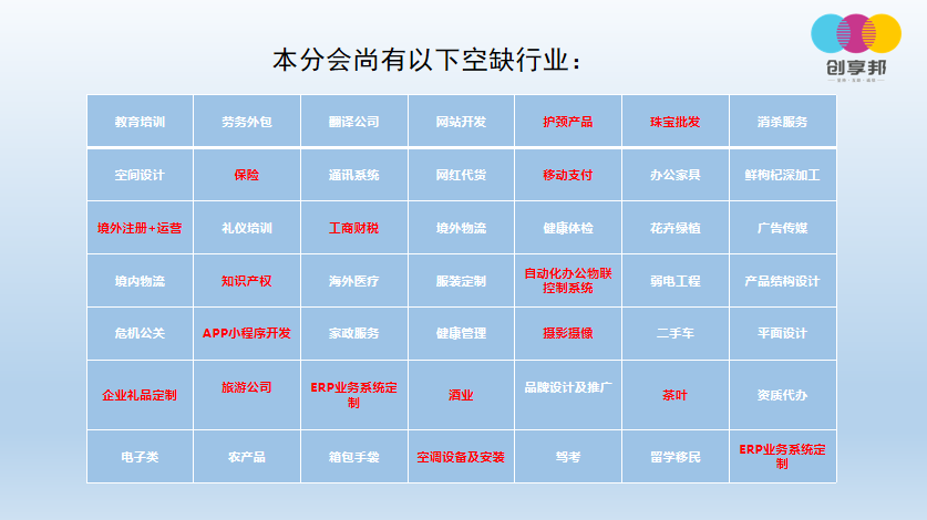 ▲一个行业只有一个代表,申请入会抢占行业空缺