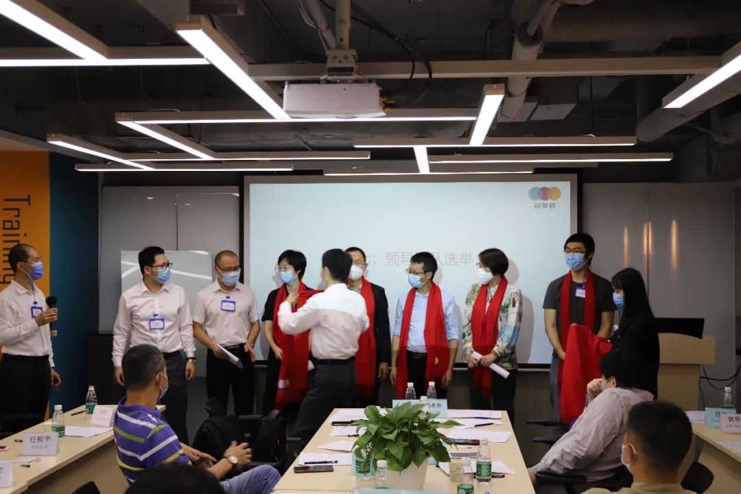 为自强分会第一届领导团队戴红围脖