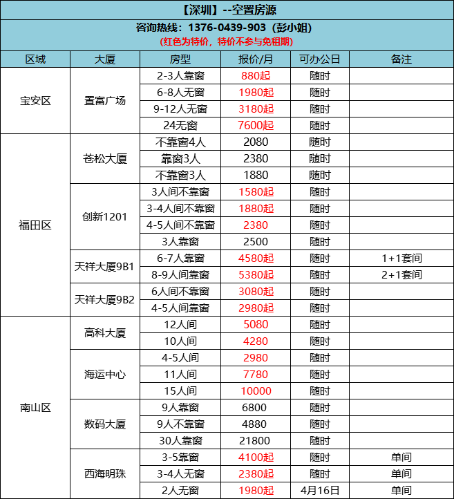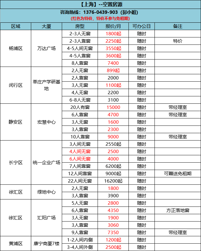 #特惠# 深圳、上海、宁波特价办公室一览