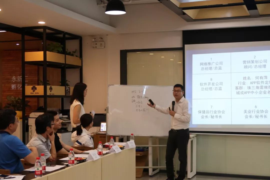 活动开始后,正式流程的第一项就是自我介绍,每人有60秒的时间,在这60秒钟内,来宾介绍了自己的姓名、所属行业、优势以及需要他人为自己引荐的渠道。
