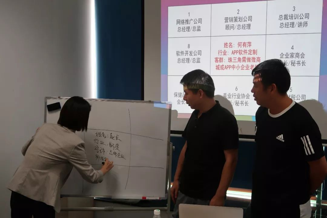 肖老师与无忌哥分享了“如何打造你的黄金商脉圈”。两位导师正在帮嘉宾现场梳理营销渠道,并在全场来宾积极引荐下,分别帮助他们现场找到20多个可以对接的资源渠道!
