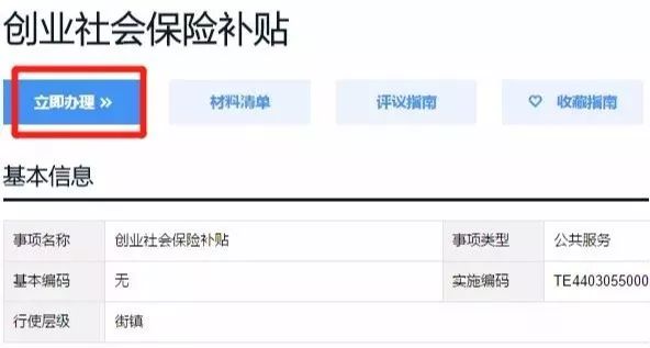 申请人/单位于广东政务服务网点击“立即办理”,跳转到申办页面填写信息,上传所需材料,打印表格进行预申请。预申请后,申请人将资料通过邮寄方式寄其居住地或户籍所在地的街道公共服务机构提交材料进行申请。