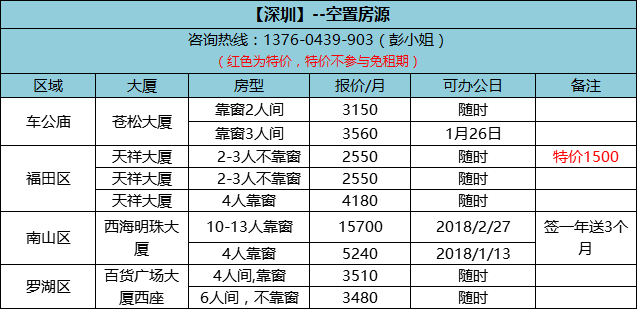今天独家放深圳空置房源