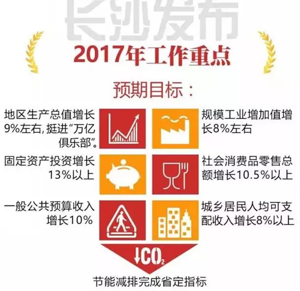 2016年,长沙成为全国26个省会城市中6个GDP总量过9000亿元的城市之一。2017年,全市经济社会发展的主要预期目标是:地区生产总值增长9%左右,挺进“万亿俱乐部”。