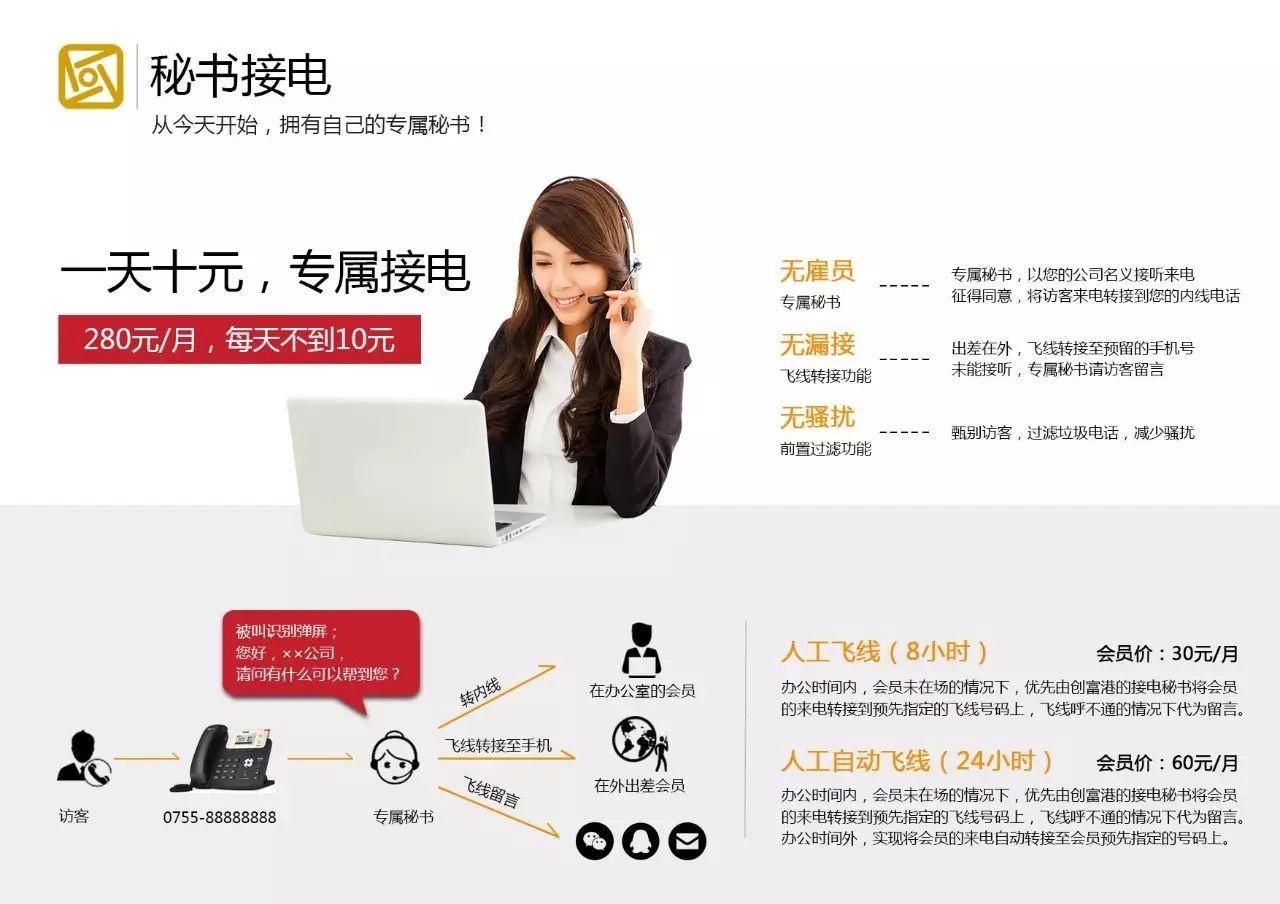 马上拥有高素质团队及良好公司形象。许多人认为,电话秘书及客服人员,只是接听电话。其实这是一个非常重要的环节,是企业的窗口及形象。与客户进行良好沟通,并非常礼貌专业的解答问题,当解答或处理不了,再将电话转接到相关人员。