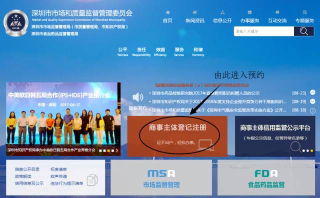 申请人在“深圳市市场和质量监督管理委员会”官网(http://www.szscjg.gov.cn/)提出申请,生成流程编号,并进行网上预约,按预约时间到窗口取号提交申请材料。