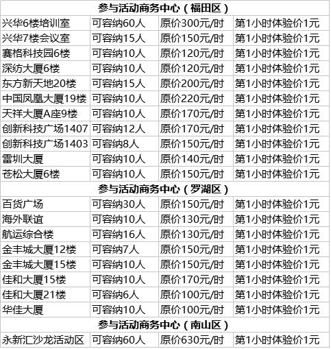 第1小时享受1元会议室体验价,若续时,第2小时原价计费