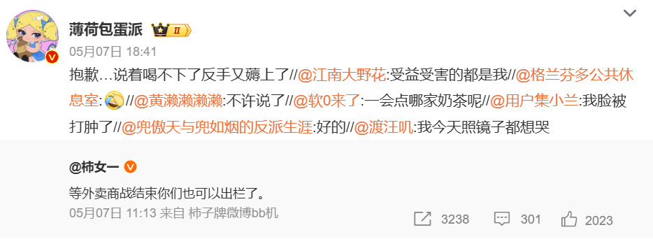 图源:@诸葛汪尽管现在还能大薅羊毛,甚至觉得“这才是奶茶应有的价格”“以后不是个位数的奶茶都不买”,但大家也都清楚,商战总有结束的一天,个位数的奶茶是只有蜜雪冰城、甜啦啦能给的承诺。