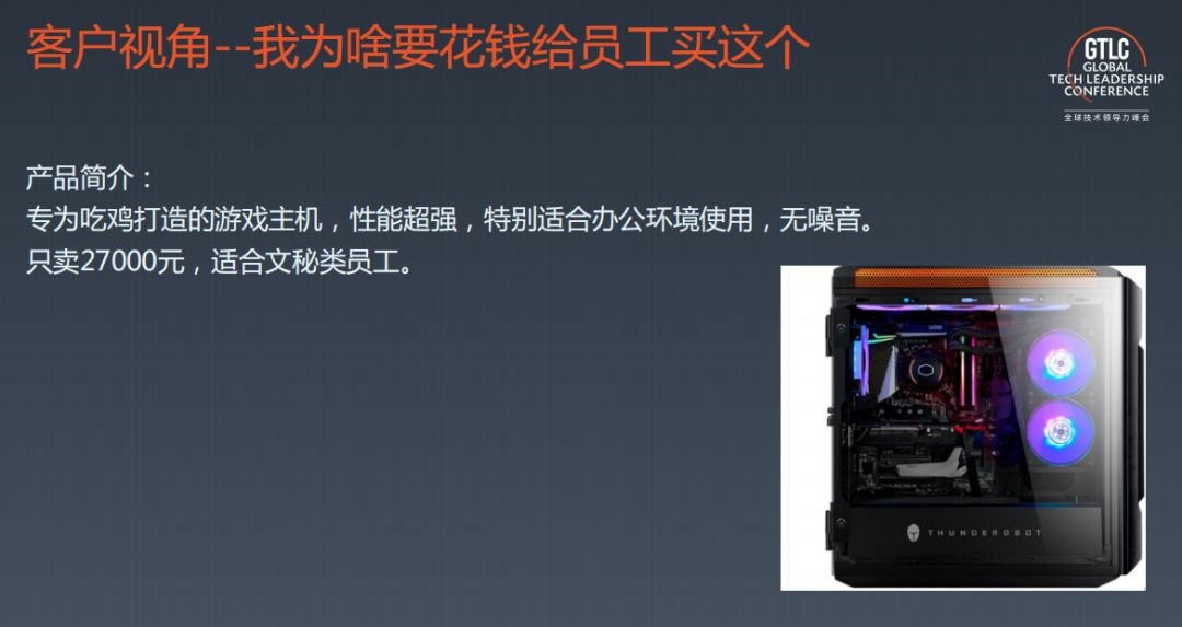 举个例子,如果你想要推销一台吃鸡专用的游戏主机,拥有顶级配置,价格为 27000 元,但是你说这个产品适合文秘类员工,你认为老板会这么想吗?