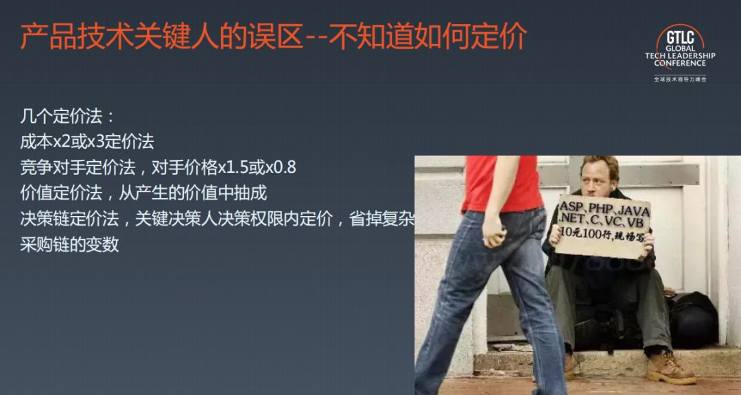 定价有几个方法,成本价 X2 或 X3;参考对手价格 X1.5 或 X0.8;基于给客户产生的价值度量定价;拍脑袋定价。最好的定价是根据产品给客户产生的价值定价。定价非常重要,只有把定价定出来了别人才知道怎么卖,看有没有利润空间,渠道商才知道愿不愿意与你合作。