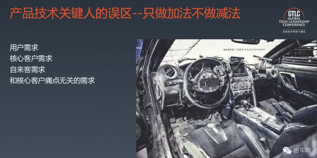 比如,造车要造一个跑的最快的车,专门设计给热爱赛车的人,那么做跑最快的车里面要不要装空调?要不要镀金?要不要做几个很牛逼的沙发?要不要做几个很大的后备厢?这些都不是关键的问题,我们只需要保证跑车的速度就可以了。