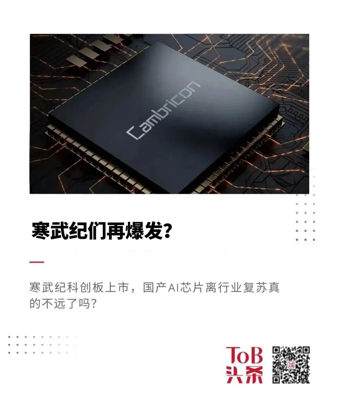 但「ToB行业头条」想问的是:寒武纪科创板上市,国产AI芯片离行业复苏真的不远了吗?