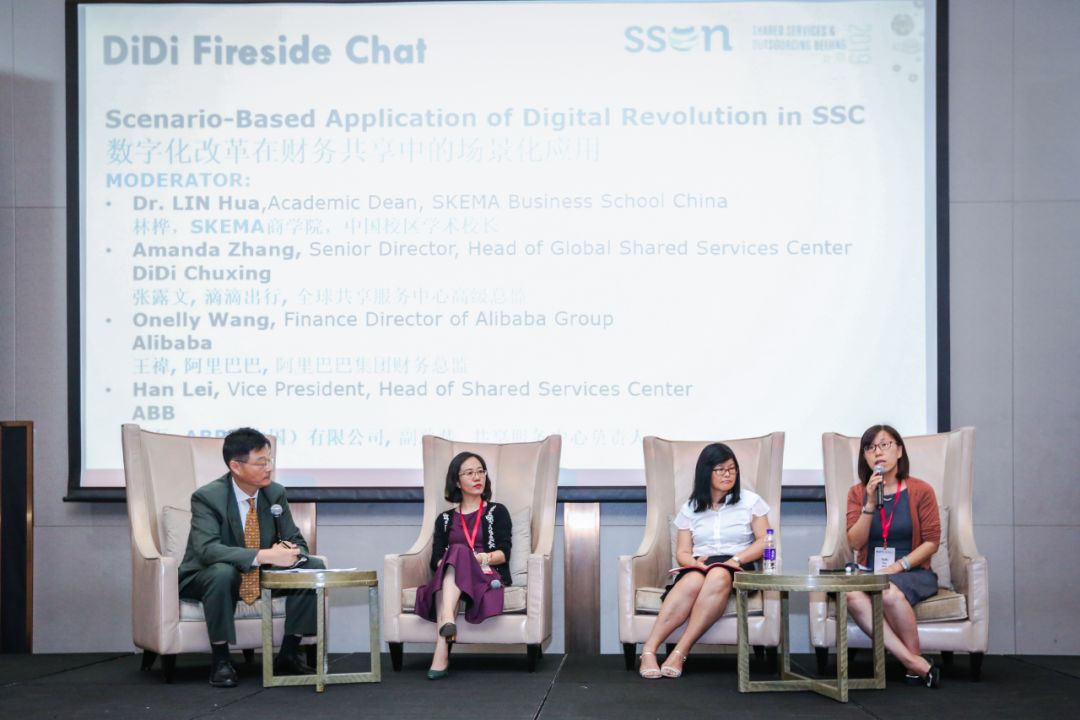 滴滴出行全球共享服务中心高级总监张露文,阿里巴巴集团财务总监一珩,ABB(中国)有限公司副总裁、财务共享服务中心负责人韩磊,以及来自SKEMA商学院中国校区校长林桦教授作为主持嘉宾,4位齐聚第五届SSON(共享服务与外包全球网络)北京峰会。在主会场SSC高峰对话中,他们主要的研讨话题是: