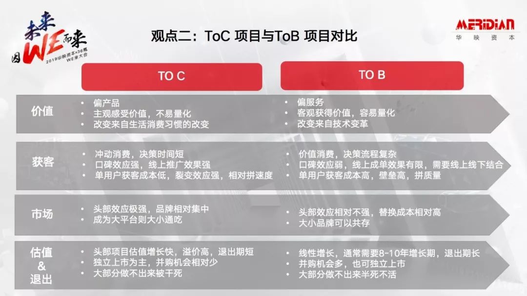 第二个是To C和To B的项目对比。