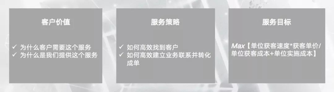服务前本质就是获客。重点解决两个问题:第一,客户为什么需要这个服务,有这个服务和没这个服务有什么不同?第二,为什么非用你,你跟别人比独特在哪里?