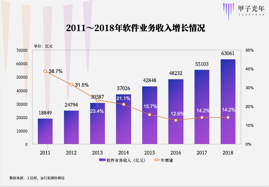 2013年起,国内软件业务收入增长率明显下降,整个市场都在说着云、SaaS是未来。