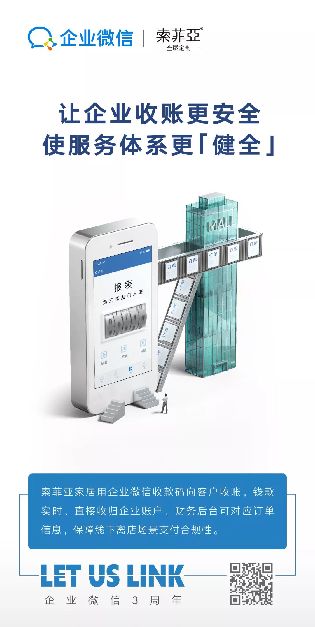 也就是说,企业微信可以通过与个人微信的连接,连通产业与用户,通过整合腾讯各大工具,为两端提升价值,最终服务于“上下半场”的过度。
