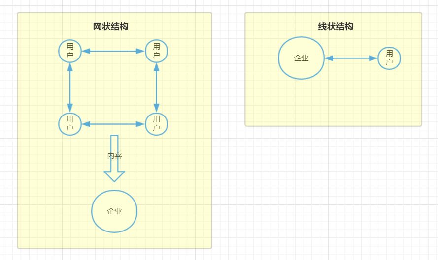 如上文所述,以组织为中心的内容,是一个单向结构,即企业向用户推送内容。