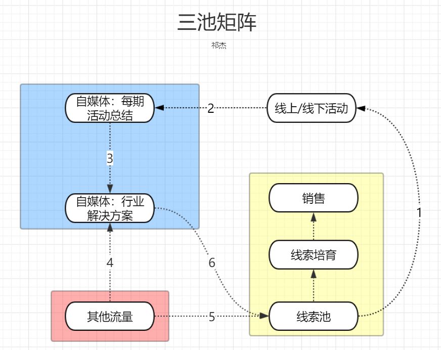 通过构建线索池,内容池,流量池的“三池矩阵”来落地内容获客。线索池目的是提高线索付费转化;内容池目的是拉新流量,清洗流量;流量池目的是承载起前端渠道流量,并为内容池和线索池提供支撑