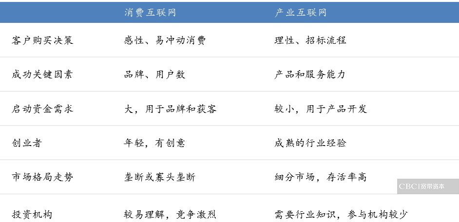 ▲ 点击看大图 消费互联网和产业互联网投资差异