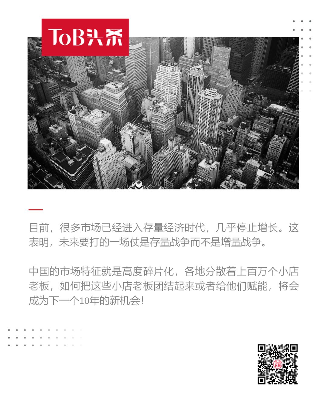 中国的市场特征就是高度碎片化,从鞋店到服装店、从建材家装到五金店、从社区超市到生鲜水果店、从美容美发到医美、从餐馆到酒店、从宠物店到宠物医院、从药店到康养中心、从二手车店到4S店、从汽修厂到汽车洗护美容店,甚至从农贸市场菜贩子到农村小镇小店等等。有680万个小店老板,每天服务着中国1亿多的城市家庭。