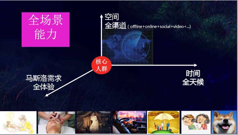所以,当我们经营“人”,全渠道只是一个空间线的维度。以“人”为主经营,则可以划分为三个维度:时间线(全天候、全生命周期)、空间线(全渠道,包括线上、线下、社交,短视频等)和马线