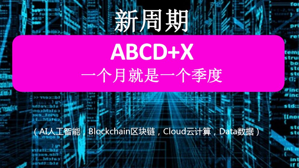 当我们思考未来的时候,新的红利出现了,那就是ABCD+X(AI人工智能,Blockchain区块链,Cloud云计算,Data数据)。