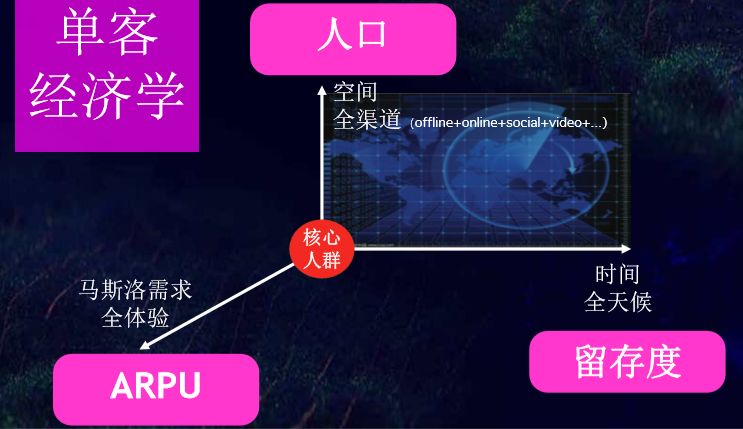 GDP=人口*ARPU(单客经济值,每用户平均收入贡献)*留存率。
