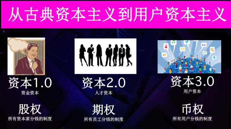 如果说AI是继蒸汽机、电气之后的第三次生产力革命,区块链则带来了极大的制度红利,它带来了第三次生产关系的革命,从股权到期权再到币权制度,我将它称之为“用户资本主义”。