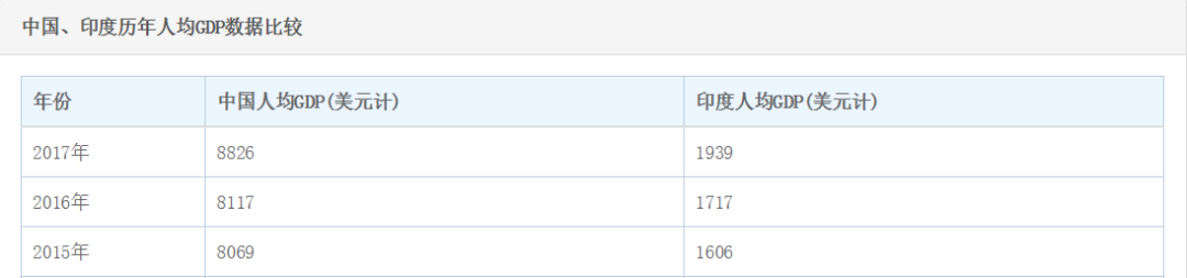 3)百姓普遍收入低。2017年,印度一线城市孟买人均GDP是2500美元,不如中国三四线省会城市;印度全国人均GDP在1940美元左右,而中国已经超过8800美元,这之间是4倍多的差距,百姓收入低是印度的一大基本现状。