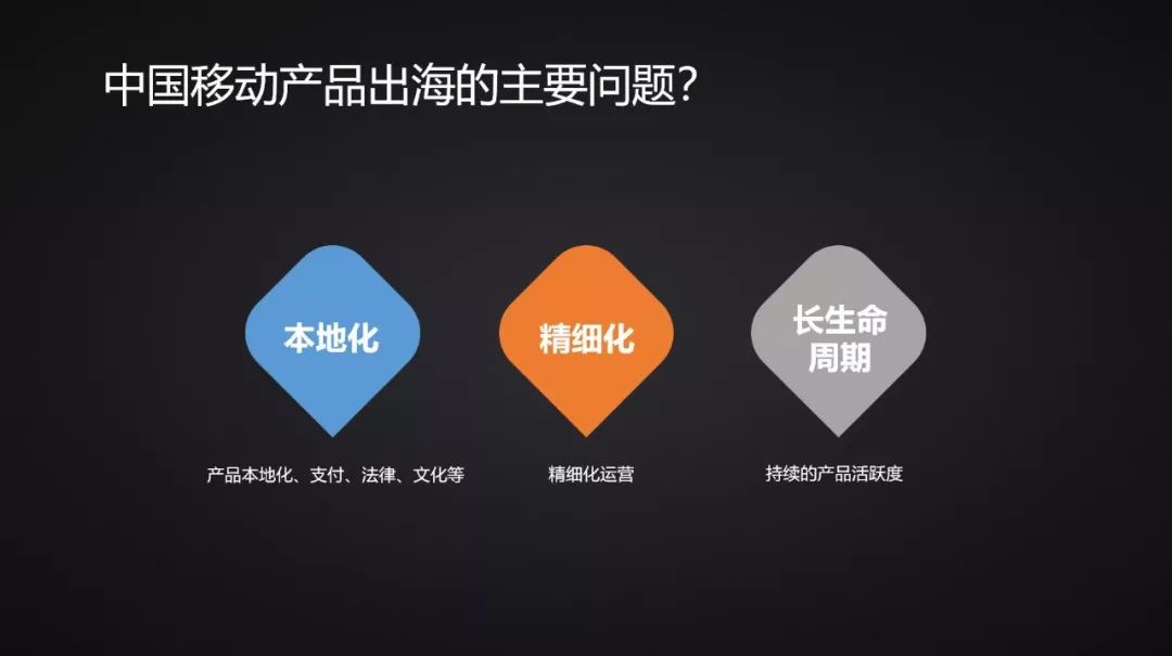 3.长生命周期:创业公司要考虑长生命周期,不仅中国的获客成本越来越高,全球的获客成本都越来越高,怎么服务好已有的客户和用户,持续保证产品的活跃度,是出海企业必须处理好的问题。