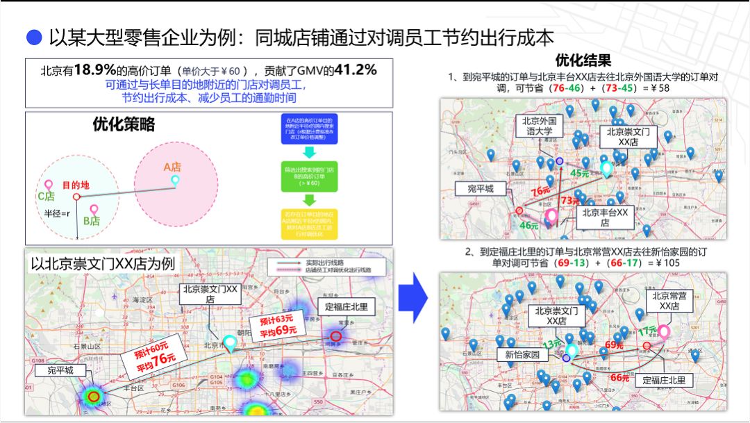以北京一家大型零售企业连锁门店为例,其使用了滴滴企业版,管理层发现员工的因公通勤出行大于60元的高价订单占据了41%以上。这家企业通过对调员工的方式,更换到离其近的门店,一来二去就可以为企业省下了大量开支。