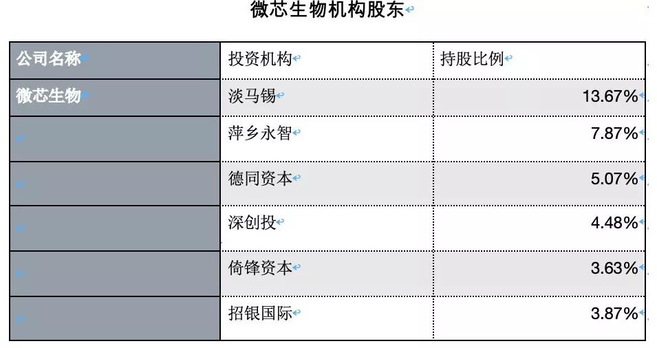 微芯生物是明星机构争相抢夺的项目,淡马锡通过LAV One和Vertex共计间接持有其13.67%股份,萍乡永智持有7.87%股份,德同资本持有5.07%,深创投持股4.48%,倚锋资本和招银国际分别持有3.63%和3.87%股份。