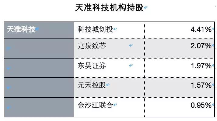 在机构投资者中,持股比例较多的股东包括科技城创投(4.41%)、疌泉致芯 (2.07%)、东吴证券(1.97%)、元禾控股(1.57%)和金沙江联合(0.95%)。