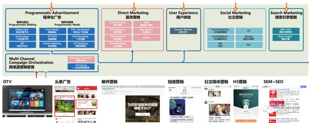 SEM、SEO、程序化广告、OTV、邮件营销、短信营销、内容营销、社交媒体营销等等。随着广告产品和广告技术的发展,越来越多的营销形式产生的同时,营销技术也在更好的给企业主提供服务支持。