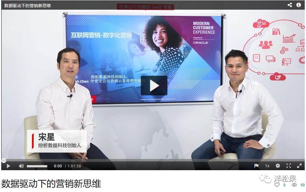 d、社交媒体营销:Oracle自己的社交平台如微信和微博也会持续更新,内容有官方的解决方案、案例、基于H5的直播活动等。