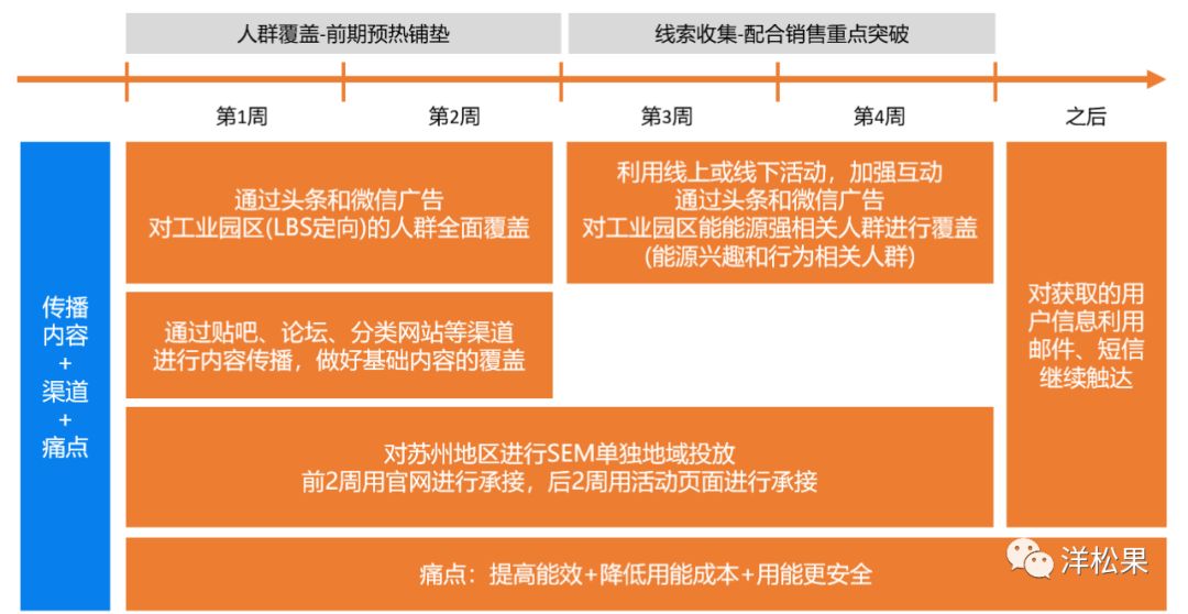 这是针对传统行业的数字营销,配合一次活动制定的营销策略示例。策略按照营销节奏,涉及漏斗的前中后阶段,配合营销渠道和营销工具,进行内容传播。因为是示例,未作为实际执行的任务。后续我会根据自己的经验和行业的经典案例,进行更多实际效果的解读。