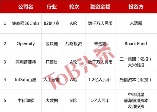 以下为国内ToB领域融资汇总表: