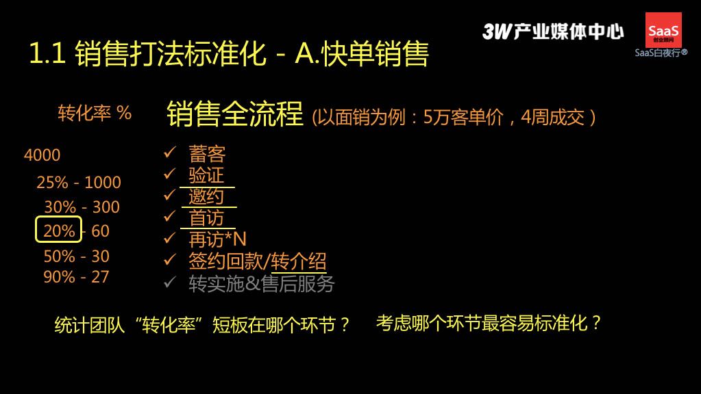 首先我们要明确,对于大部分客单价5万元以内的产品,4周就要成交,否则企业很难控制住成本。如果企业没法控制好成交周期,那就需要考量营销的各个环节是否有可完善的地方。