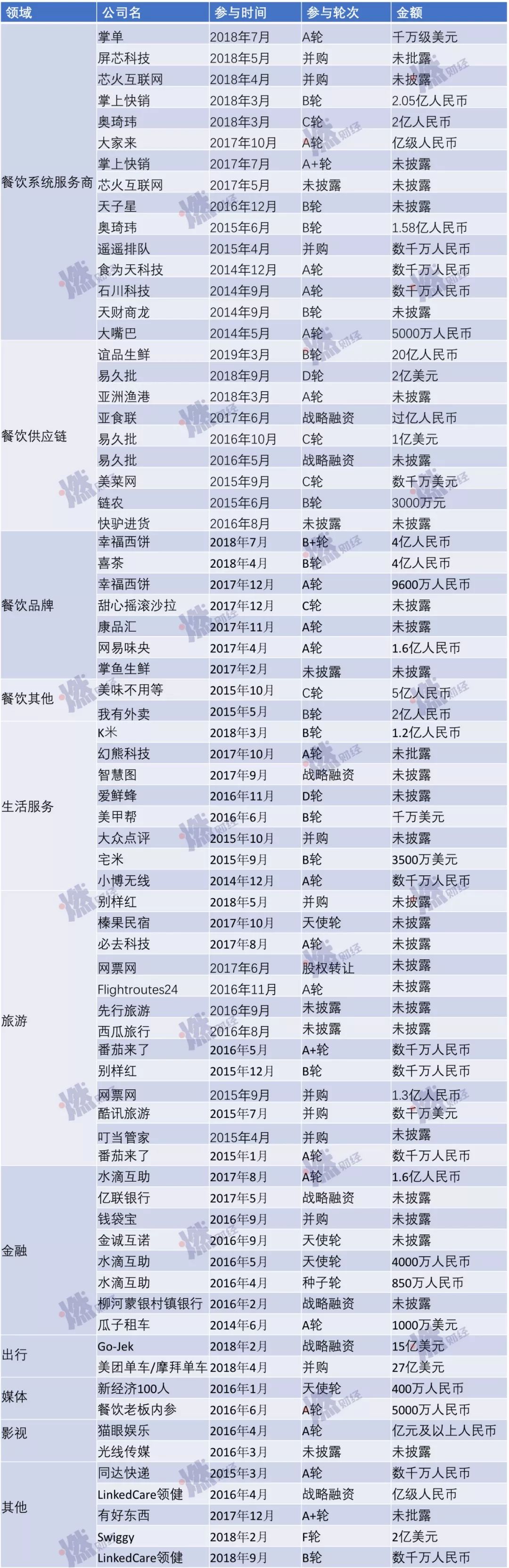 事实上,餐饮一直是美团的核心。美团的74笔投资中,其中涉及餐饮相关的有34笔,覆盖系统服务商、供应链、餐饮品牌等细分领域。