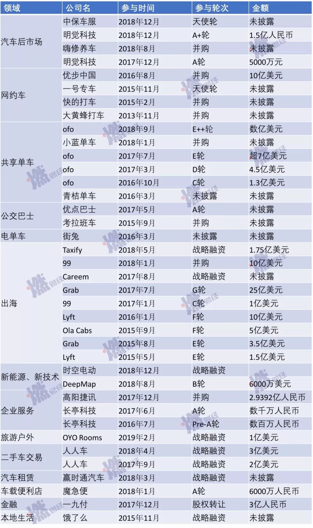 与此同时,滴滴除了在出行这一核心业务上巩固市场地位、扩大布局外,还在扩展配套服务。滴滴曾投资中保车服、明觉科技等多个和汽车后市场相关的项目,并且投资了人人车这样的二手车交易平台。
