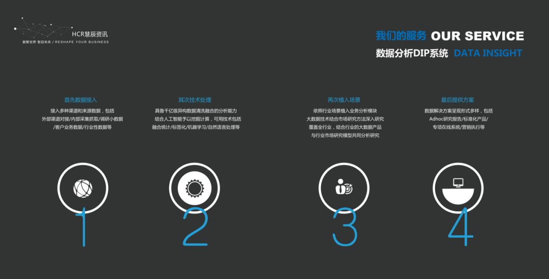 HCR慧辰资讯通过数十年行业的深入积累及对宏观趋势和产业趋势的洞察,在大数据、数据智能领域,顺势而为,不断积累竞争优势,直到今天数百家世界500强客户的认可,离不开对价值创造长期主义的信仰和原则的坚守。持续的为客户提供可持续的稀缺价值,尤为重要。