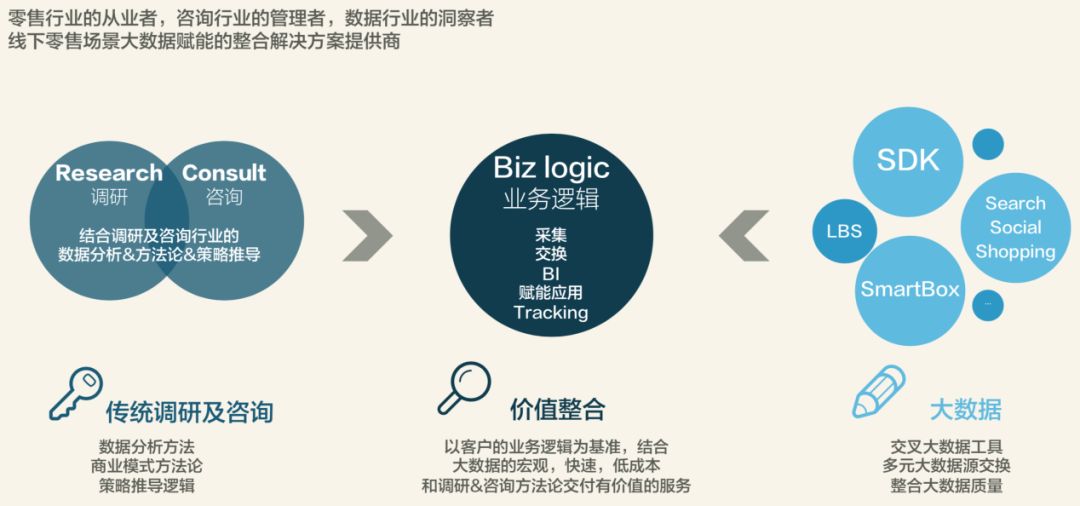 上图解释了慧辰资讯为何对标ACNielsen + SAP。慧辰资讯早期形成的调研、咨询能力加上后期成长的大数据能力,为其提供了一套独特的价值整合的机会。实话说,如果不是最近的接触,完全意识不到慧辰资讯已经发生了巨大的变化。